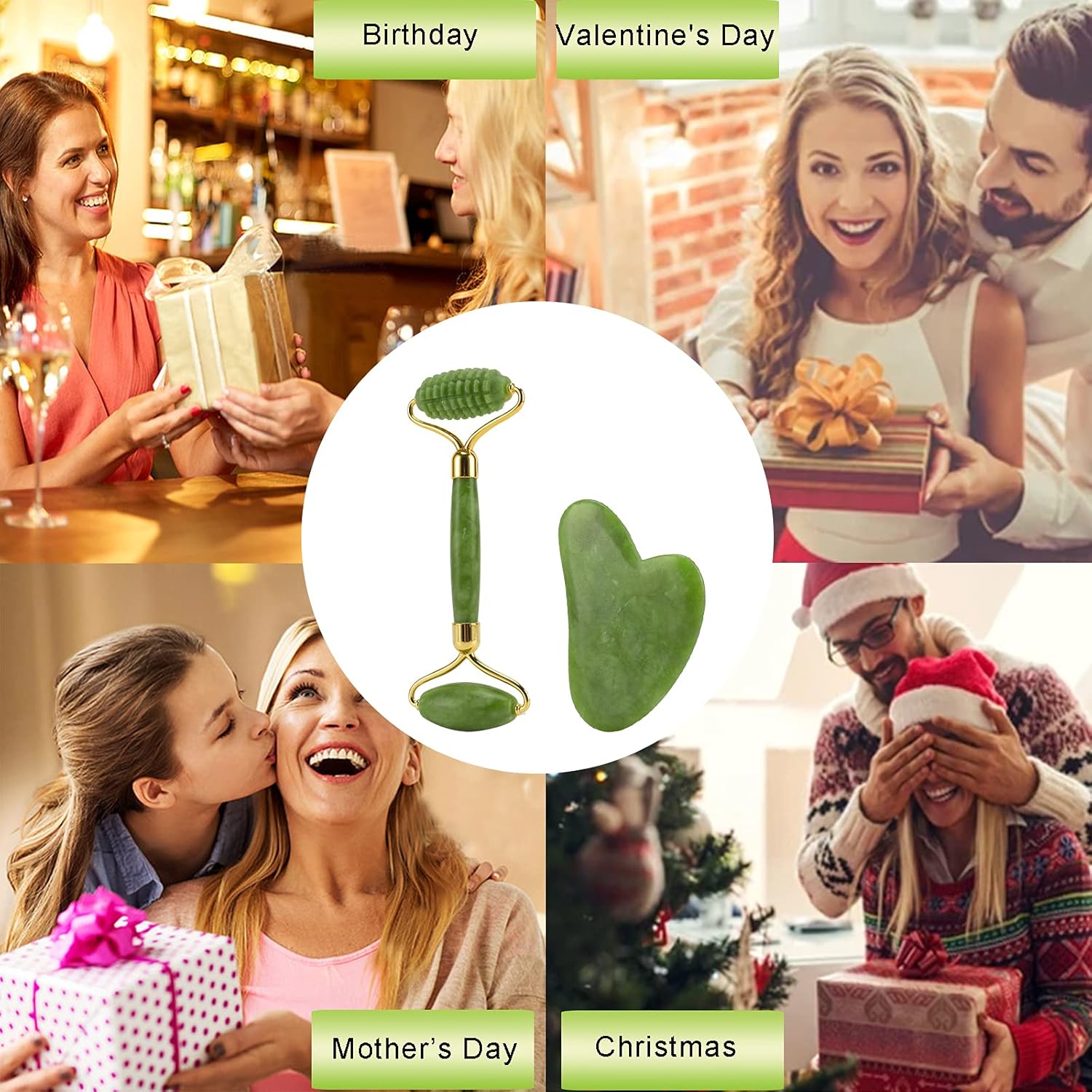 - Durable & Ergonomic: Smooth, polished jade rollers are securely attached to a sturdy handle for a comfortable and seamless massage experience.